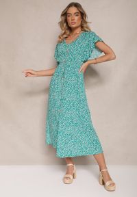 Born2be - Zielona Długa Sukienka Rozkloszowana w Ornamentalny Wzór z Falbanką Ariantise. Okazja: na co dzień. Kolor: zielony. Materiał: skóra, tkanina. Sezon: lato. Styl: klasyczny, casual, elegancki. Długość: maxi