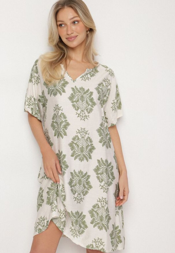 Born2be - Ciemnozielona Siateczkowa Sukienka z Wiskozą w Kwiatowy Wzór Izaleira. Okazja: na co dzień, na imprezę. Kolor: zielony. Materiał: wiskoza. Wzór: kwiaty. Sezon: lato. Styl: casual, elegancki