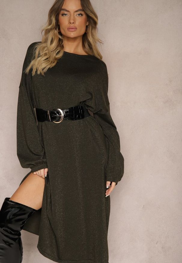 Renee - Ciemnozielona Sukienka o Rozkloszowanym Kroju z Paskiem i Falbanką Nativese. Okazja: na co dzień, na spacer. Kolor: zielony. Typ sukienki: proste. Styl: casual, elegancki