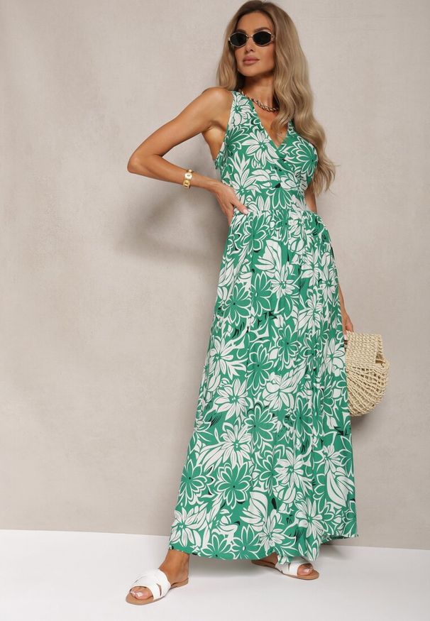 Renee - Jasnobeżowa Sukienka o Kopertowym Kroju Midi Kynzle. Okazja: na co dzień, na spotkanie biznesowe. Typ kołnierza: dekolt w kształcie V. Kolor: beżowy. Typ sukienki: kopertowe. Materiał: dzianina. Długość rękawa: krótki rękaw. Sezon: lato. Styl: biznesowy, klasyczny, casual, elegancki. Długość: midi