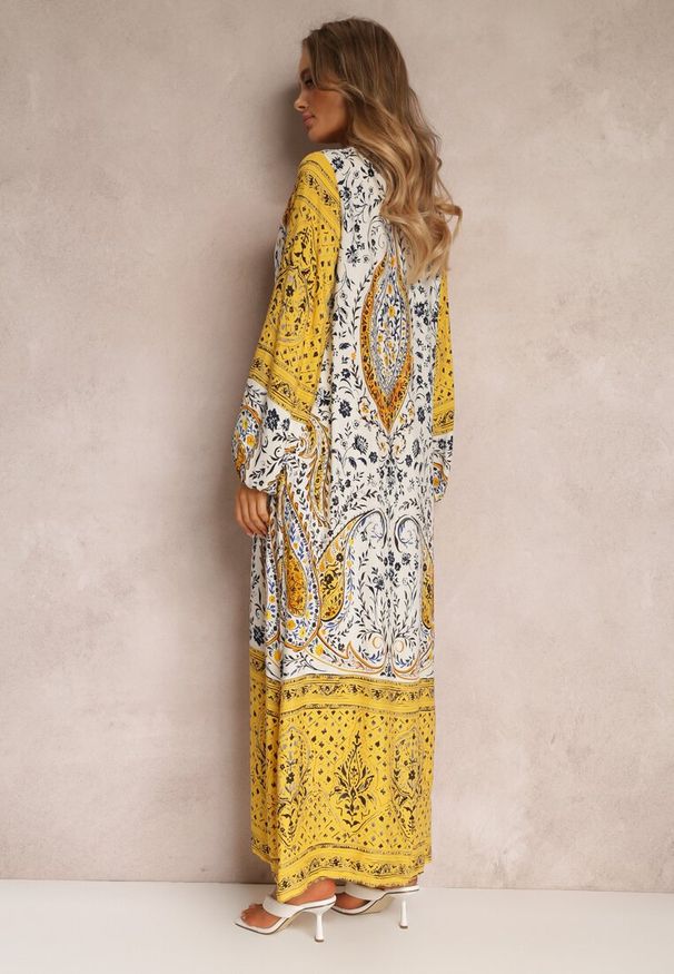 Born2be - Ciemnozielona Sukienka Anastolea. Kolor: zielony. Długość rękawa: długi rękaw. Wzór: kolorowy, paisley, aplikacja. Typ sukienki: kopertowe. Styl: boho. Długość: maxi