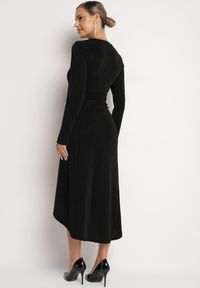 Renee - Czarna Sukienka z Cekinami i Marszczeniem Olono. Okazja: na co dzień. Typ kołnierza: dekolt w kształcie V. Kolor: czarny. Materiał: skóra, wiskoza. Typ sukienki: dopasowane. Styl: wizytowy, casual, elegancki