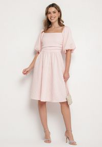Renee - Różowa Dopasowana Sukienka Midi o Asymetrycznym Kroju Lirevasse. Kolor: różowy. Typ sukienki: asymetryczne. Długość: midi