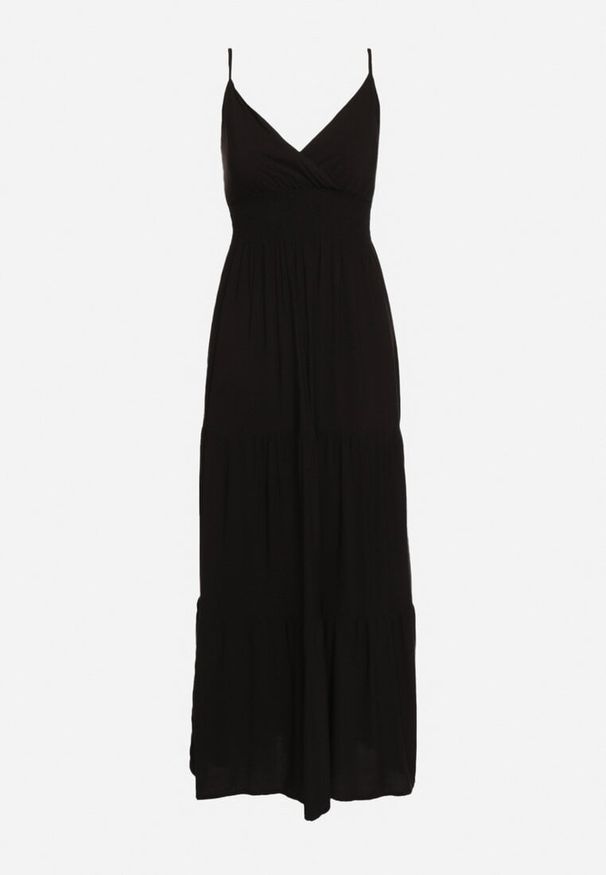Born2be - Czarna Rozkloszowana Sukienka z Wiskozy w Ornamentalny Wzór Gonavina. Okazja: na co dzień. Typ kołnierza: dekolt w kształcie V. Kolor: czarny. Materiał: wiskoza. Długość rękawa: długi rękaw. Typ sukienki: oversize. Styl: casual, elegancki