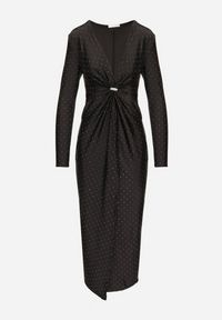 Born2be - Czarna Sukienka z Bufiastym Rękawem i Guzikami przy Dekolcie Mozelle. Okazja: na co dzień, na spotkanie biznesowe. Typ kołnierza: dekolt w serek. Kolor: czarny. Materiał: tkanina. Sezon: jesień, wiosna. Typ sukienki: proste. Styl: biznesowy, casual