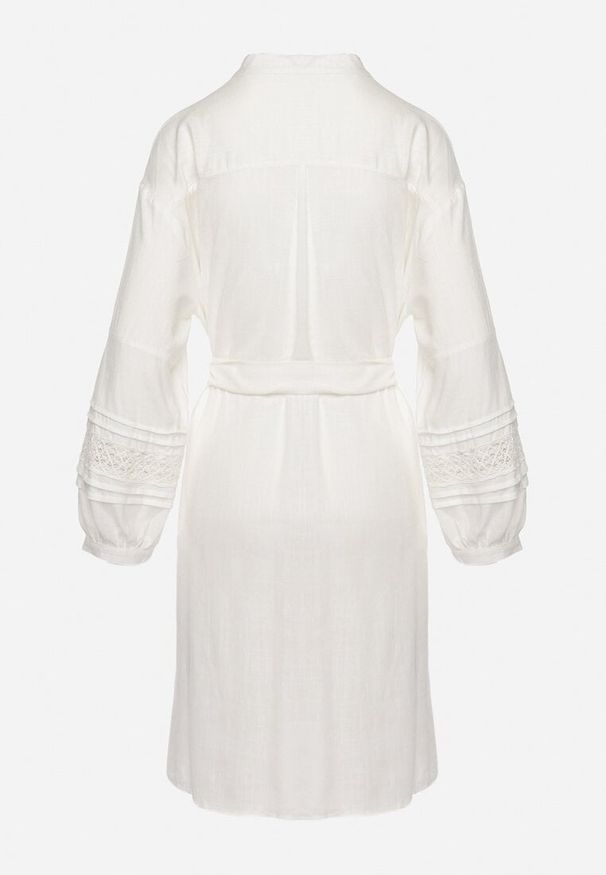Born2be - Niebieska Kopertowa Sukienka o Dopasowanym Kroju z Supełkiem Anjela. Okazja: na spotkanie biznesowe. Typ kołnierza: dekolt w kształcie V. Kolor: niebieski. Długość rękawa: długi rękaw. Typ sukienki: kopertowe. Styl: biznesowy, elegancki