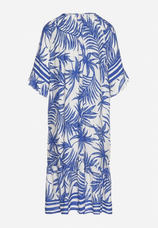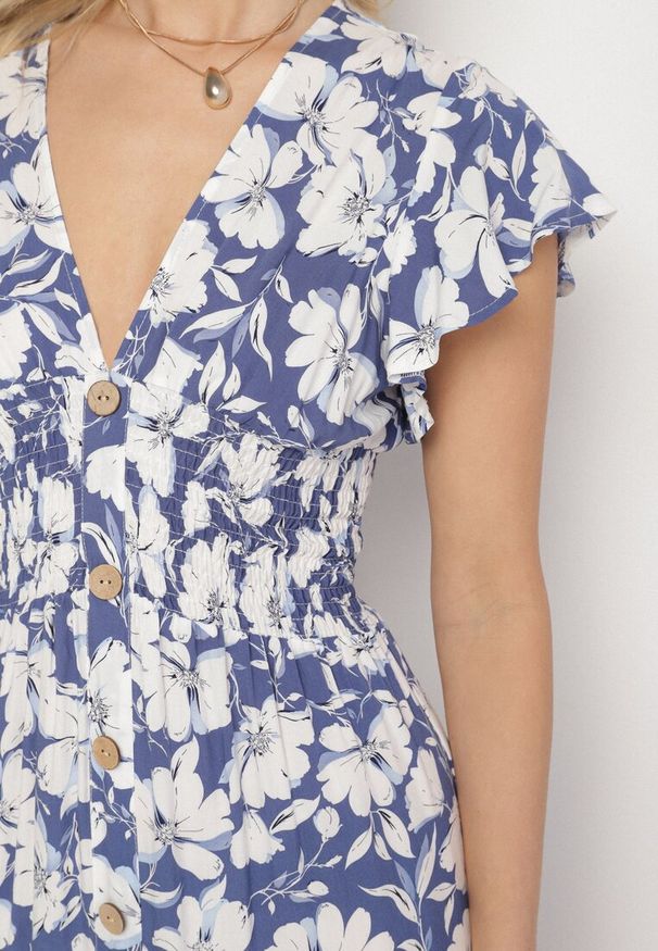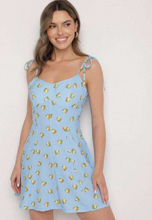 Born2be - Niebieska Sukienka Emas. Kolor: niebieski. Materiał: tkanina. Wzór: kwiaty, nadruk. Długość: mini