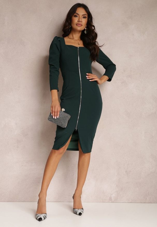 Renee - Granatowa Jeansowa Sukienka na Ramiączkach Zapinana na Napy z Paskiem z Imitacji Skóry Wemia. Okazja: na co dzień. Typ kołnierza: dekolt w kształcie V, dekolt kwadratowy. Kolor: niebieski. Materiał: skóra, jeans. Długość rękawa: na ramiączkach. Sezon: lato. Typ sukienki: proste. Styl: casual, elegancki