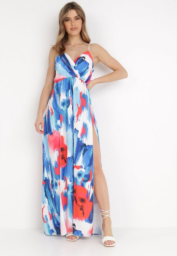 Born2be - Niebieska Sukienka Galiphae. Kolor: niebieski. Długość rękawa: na ramiączkach. Wzór: kolorowy. Typ sukienki: kopertowe. Styl: wizytowy. Długość: maxi