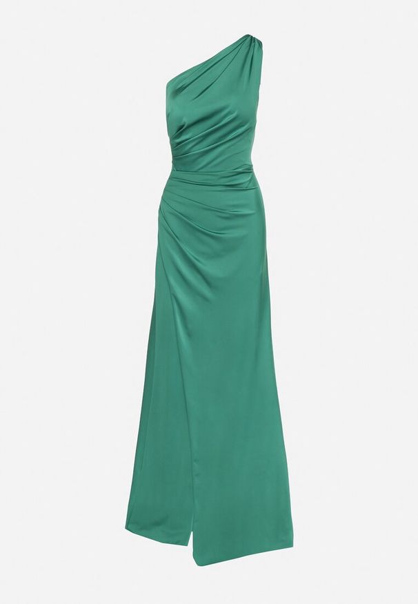 Renee - Zielona Koktajlowa Sukienka z Ozdobnym Wycięciem i Wiązaniem Vamicea. Kolor: zielony. Typ sukienki: asymetryczne. Styl: wizytowy