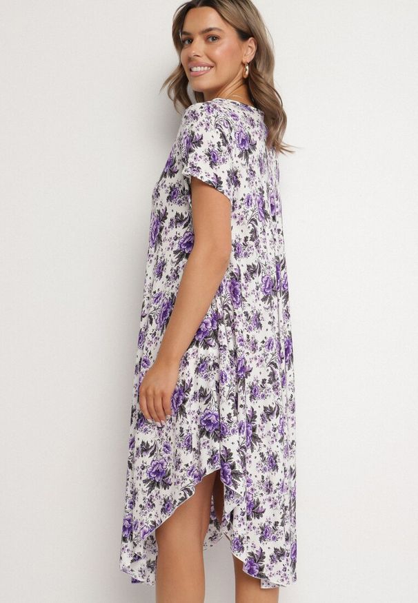 Born2be - Biała Dopasowana Sukienka z Marszczeniem i Dłuższym Tyłem Lilate. Kolor: biały. Materiał: dzianina, wiskoza. Sezon: lato. Typ sukienki: asymetryczne. Styl: elegancki