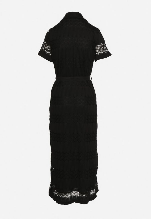 Born2be - Czarna Koszulowa Sukienka na Guziki z Ażurowym Wzorem Wiązana Paskiem Klarevia. Okazja: do pracy. Kolor: czarny. Materiał: tkanina, skóra. Wzór: ażurowy. Sezon: lato, wiosna. Typ sukienki: koszulowe. Styl: klasyczny, elegancki