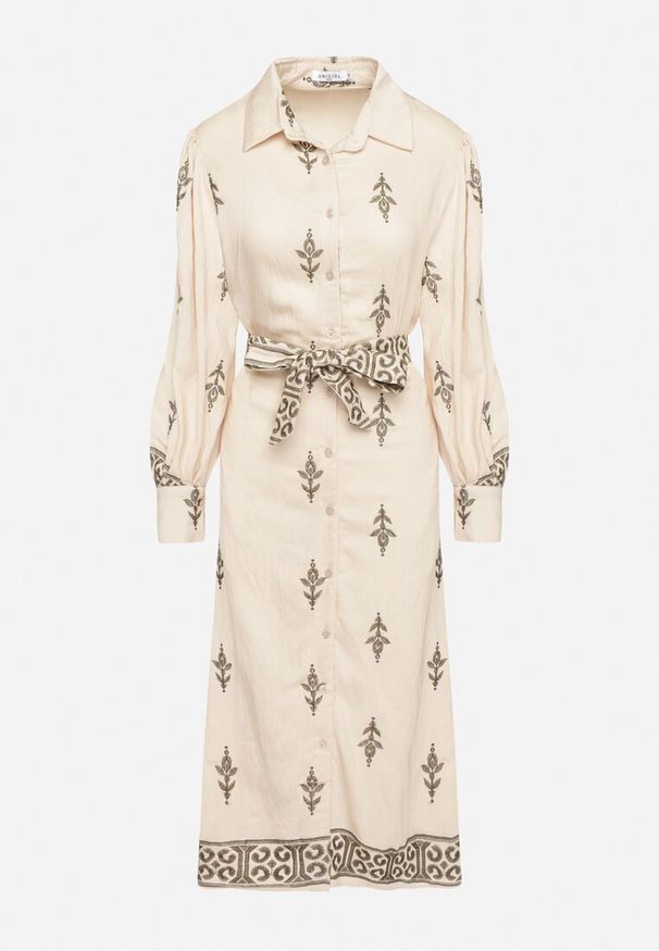 Born2be - Beżowa Rozpinana Sukienka Koszulowa z Regulowanymi Rękawami Grimoire. Kolor: beżowy. Typ sukienki: koszulowe. Styl: elegancki, wizytowy