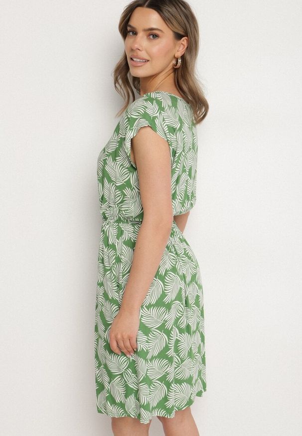 Born2be - Ciemnozielona Siateczkowa Sukienka z Wiskozą w Kwiatowy Wzór Izaleira. Okazja: na co dzień, na imprezę. Kolor: zielony. Materiał: wiskoza. Wzór: kwiaty. Sezon: lato. Styl: casual, elegancki