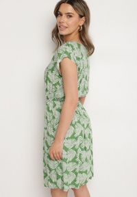 Born2be - Ciemnozielona Siateczkowa Sukienka z Wiskozą w Kwiatowy Wzór Izaleira. Okazja: na co dzień, na imprezę. Kolor: zielony. Materiał: wiskoza. Wzór: kwiaty. Sezon: lato. Styl: casual, elegancki