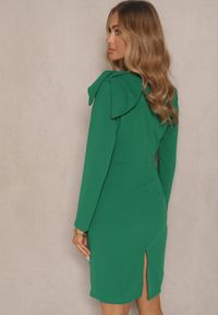 Renee - Zielona Sukienka Koszulowa Wiązana z Przodu z Marszczeniem Raimona. Okazja: na co dzień. Kolor: zielony. Materiał: skóra. Typ sukienki: koszulowe. Styl: casual, elegancki
