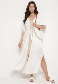 Born2be - Zielona Rozkloszowana Sukienka z Wiskozą Ozdobiona Falbankami Zapinana na Guziki z Dodatkowym Materiałowym Paskiem Ganesia. Okazja: na imprezę. Typ kołnierza: kołnierz z falbankami. Kolor: zielony. Wzór: aplikacja. Typ sukienki: rozkloszowane. Materiał: wiskoza, materiał. Długość rękawa: krótki rękaw. Sezon: lato. Styl: elegancki