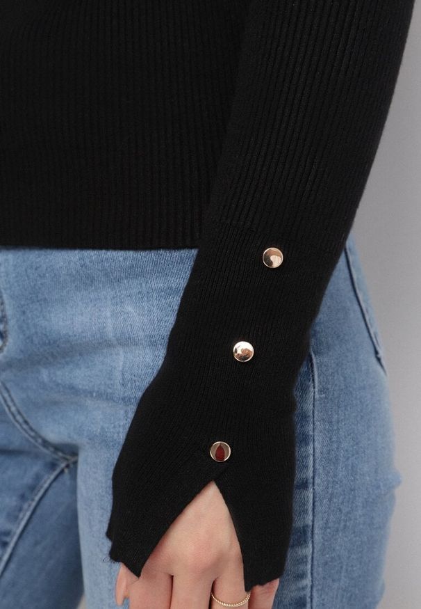 Born2be - Czarny Sweter Prążkowany z Cyrkoniami Romivra. Okazja: na co dzień. Kolor: czarny. Materiał: prążkowany. Długość rękawa: długi rękaw. Długość: długie. Styl: casual, elegancki