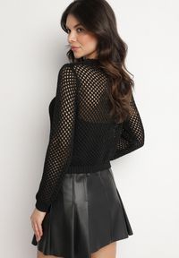 Born2be - Czarny Ażurowy Kardigan z Kwiatami Helallia. Kolor: czarny. Wzór: kwiaty, ażurowy. Sezon: jesień, wiosna, zima