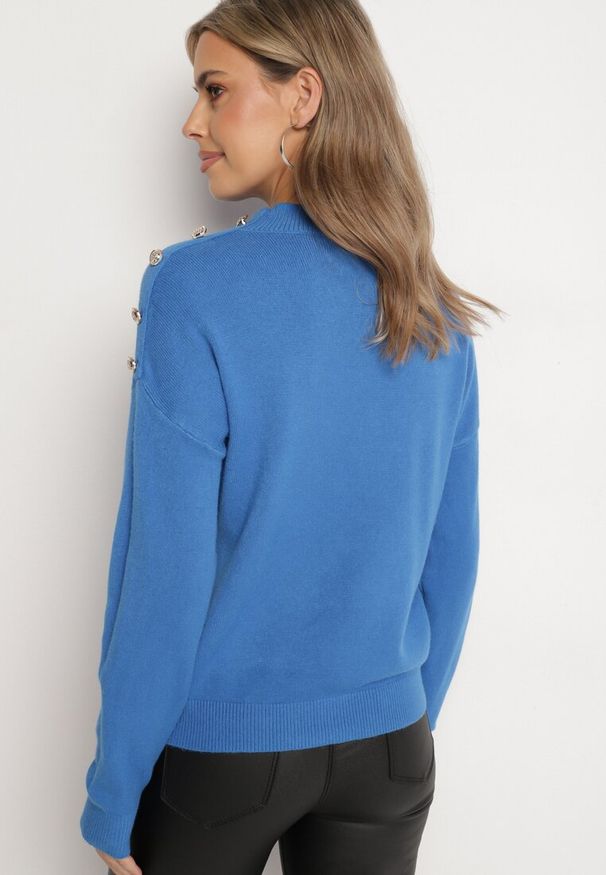 Born2be - Niebieski Sweter o Klasycznym Kroju z Wytłoczonym Wzorem Gundall. Kolor: niebieski. Styl: klasyczny
