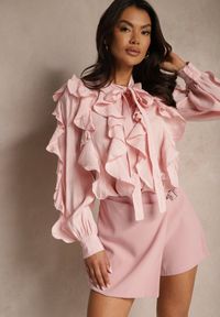 Renee - Fuksjowe Szorty z Guzikami i Gumką w Pasie Ściągane Troczkiem Amalilena. Kolor: różowy. Materiał: szyfon. Długość: krótkie. Styl: elegancki