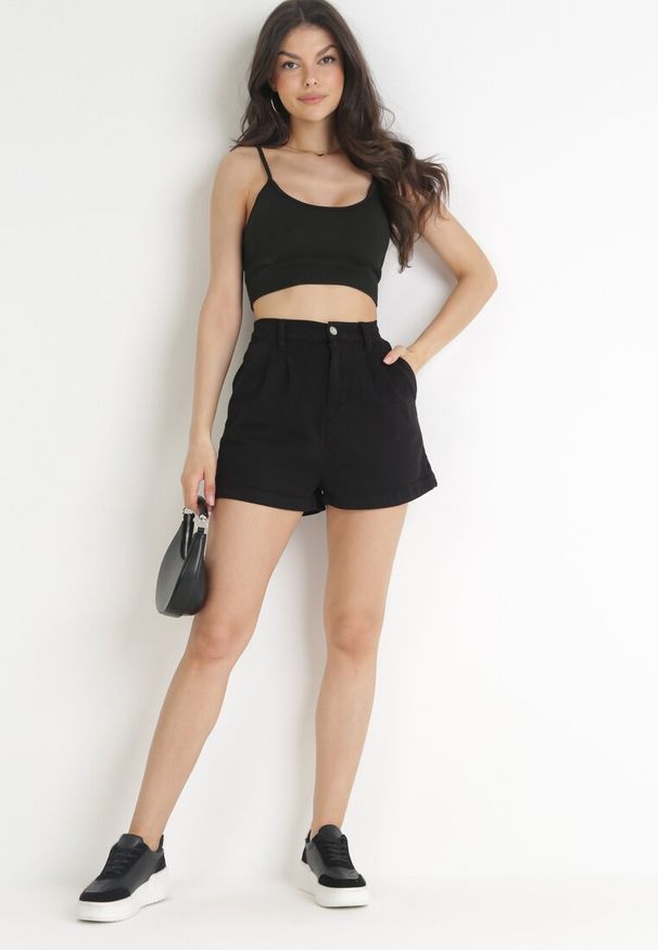 Born2be - Czarne Szorty Kolarki z Gumką w Pasie Lethea. Stan: podwyższony. Kolor: czarny. Materiał: materiał. Styl: klasyczny