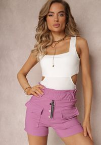 Renee - Białe Szorty z Gumką w Pasie Ozdobione Haftem Nowan. Kolor: biały. Wzór: aplikacja, haft. Styl: boho, wakacyjny