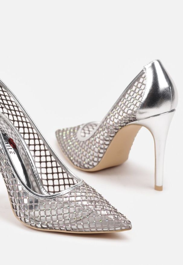 Wyprzedaż - srebrne szpilki damskie, kolekcja zima 2025