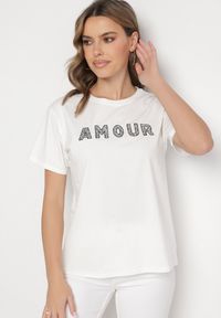 Born2be - Biały T-shirt z Bawełny o Kroju Oversize z Haftem i Cekinami Uliowena. Okazja: na co dzień, na spacer. Kolor: biały. Materiał: bawełna. Wzór: haft. Sezon: lato. Styl: casual