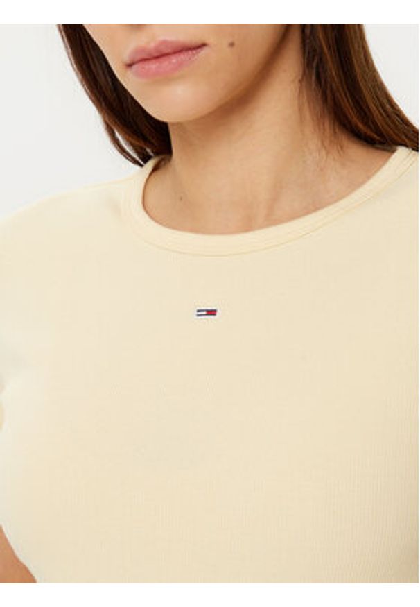 Tommy Jeans T-Shirt DW0DW21421 Écru Slim Fit. Materiał: bawełna