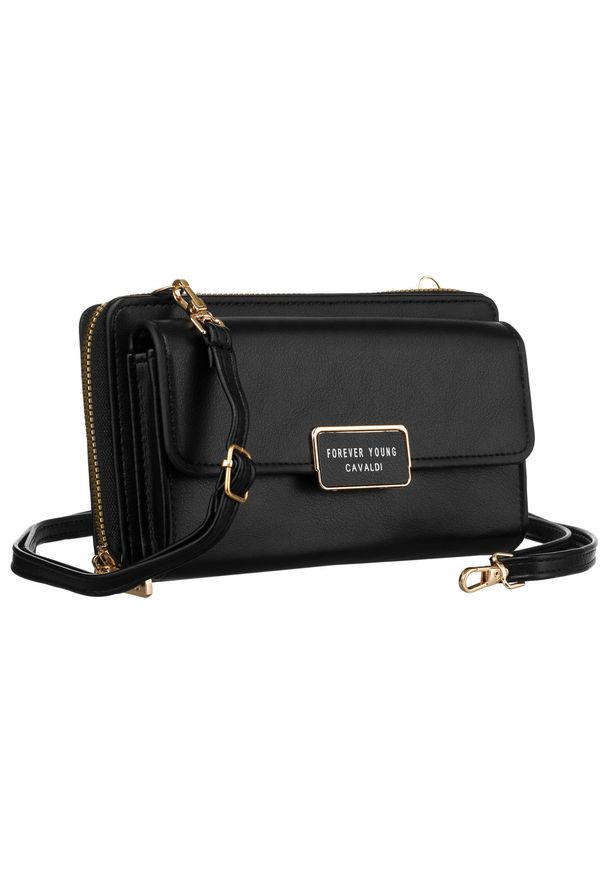 4U CAVALDI - Mini torebka-portfel 4U Cavaldi M-11 czarna. Kolor: czarny. Materiał: skórzane