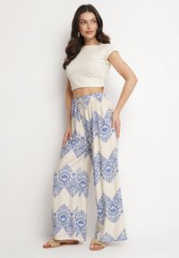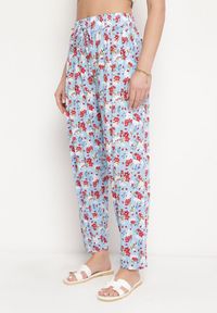 Born2be - Niebieskie Szerokie Spodnie z Wiskozy z Gumką w Pasie w Kwiaty Bisilia. Kolor: niebieski. Materiał: wiskoza. Wzór: kwiaty. Sezon: lato